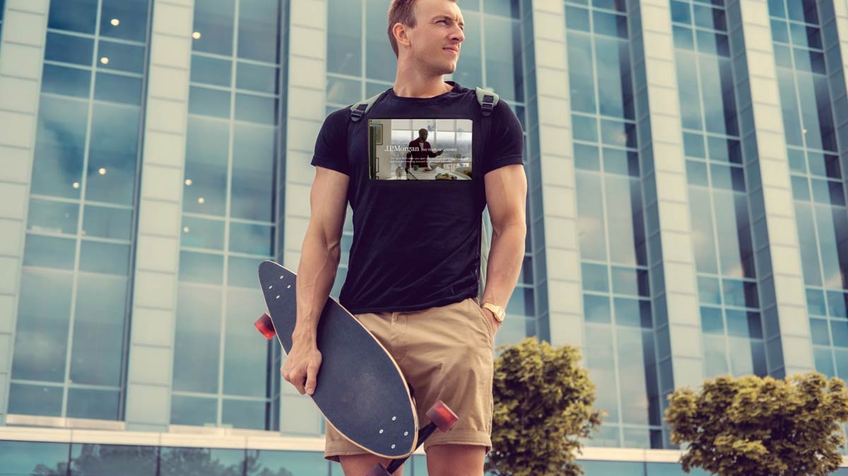 החולצה הזאת נראית כמו משהו מסרט מדע בדיוני, אבל מדובר באביזר אמיתי. מסך מובנה יכול להפוך את המשתמש לשלט חוצות מהלך. המסך בגודל עשרה אינץ', מאפשר להקרין עליו תכנים כגון פרסומת לעסק, סרטונים ויראליים או יצירות NFT. המסך פועל מסוללה מובנית שיכולה להחזיק עד ארבע שעות ברציפות. החולצה נשארת גמישה וקלה, והמסך מוגן מרטיבות ומלכלוך. אפשר כמובן לנתק אותו מהבגד בשביל לכבס ולנקות את החולצה כמו פריט לבוש רגיל.