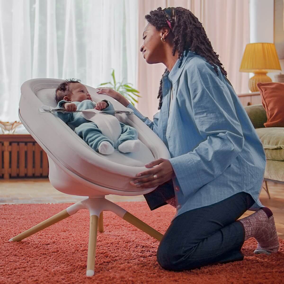 העריסה מחוברת לאפליקציה במכשירים חכמים ומאפשרת לעבור בין מצבי פעילות ולעקוב אחרי פעילות העריסה בכל רגע. האפליקציה עוזרת להבין את הרגלי השינה והמנוחה של התינוק. העריסה מתוכננת עם מחשבה רבה על ניידות נוחה. יש לה גלגלים והיא יכולה לעבוד על סוללה מובנית באופן אוטונומי עד 4 שעות ברצף. היא קלה לניקוי ולשימוש.