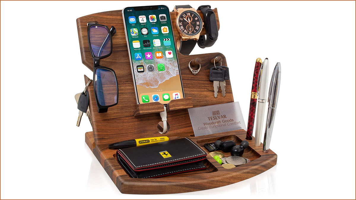ארגונית הגברים של TESLYAR היא פתרון חכם למצב החוזר הזה. מדובר בתחנת טעינה מעץ אגוז טבעי, שכוללת מקום לטלפון, מעמד למחזיק מפתחות, מקום לארנק ומה לא. רק צריך לוודא שהגבר לא ישכח שהוא שם את זה שם. זו מתנה שאם תתנו לאבא או לבעל, תודו לנו אח"כ על החיסכון בכאב הראש.