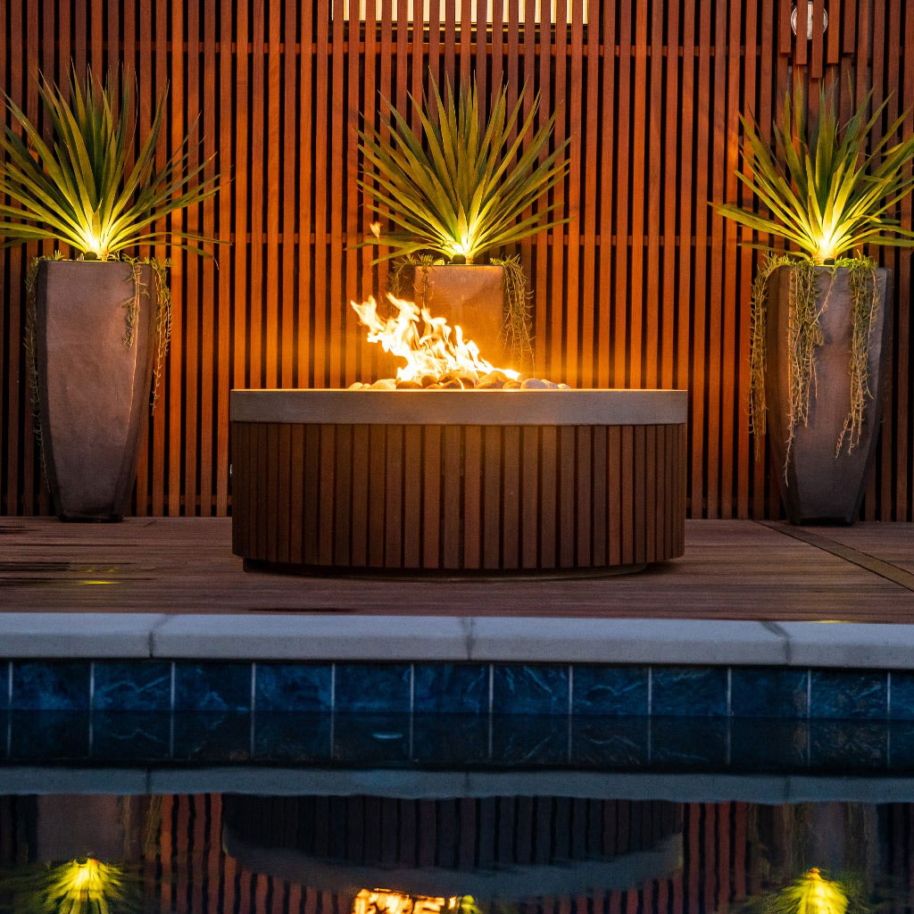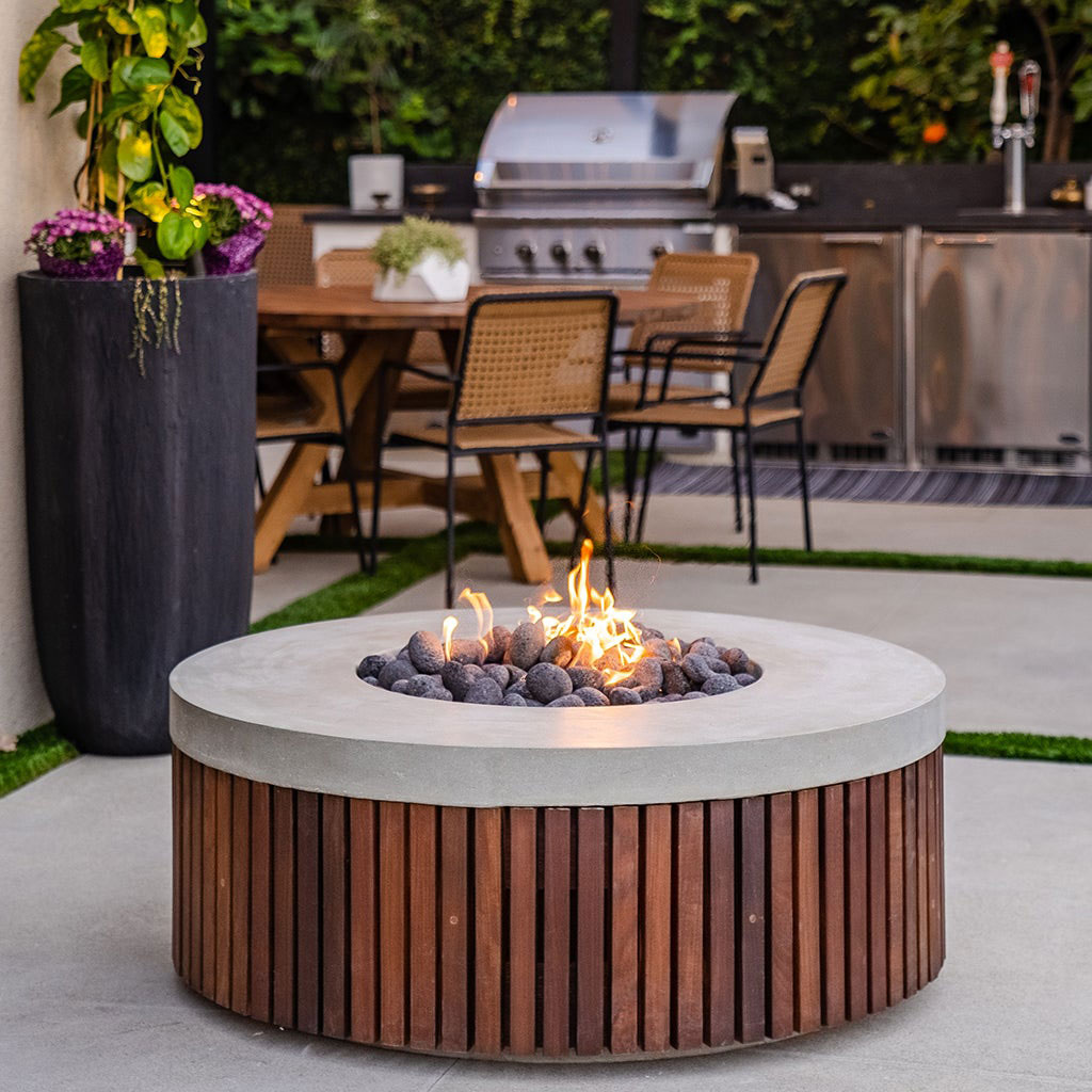 סאן קלמנטה מציעים מדורה אלקטרונית, או "שולחן אש", להסקת החצר באמצעות גז פרופאן או גז טבעי. עשויה מבטון מחוזק בסיבי זכוכית, ובעלת כושר חימום בעוצמת 65000 BTU. מגיעה עם 80 פאונד של אבני לאבה, מנגנון הצתה מפלדת אל-חלד. צבעים: בלבן מאט, אפור ושחור; קוטר: 114.3 סנטימטרים.