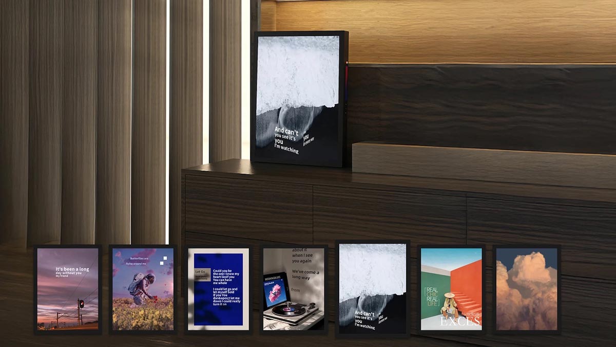 למסגרת החכמה גישה לספרייה ייחודית עם אלפי תמונות ועיצובים. אפשר להפעיל את המסגרת לתצוגה דינמית של תמונות, סרטונים ותוכן ויזואלי. רמקולים מובנים מספקים צלילים איכותיים ונקיים. למסגרת מסך מולטימדיה גדול (30 אינץ') ואופציית הפעלה חכמה נוגדת בוהק (anti-glare).