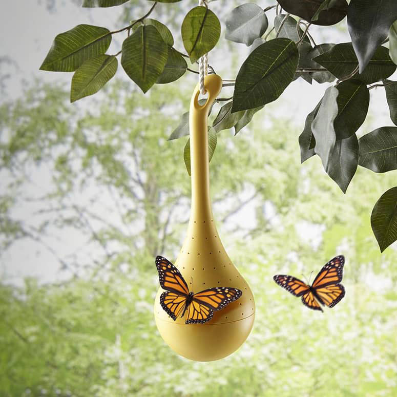 חברת Hammacher Schlemmer מציעה למכירה מתקן להאכלת פרפרים שפותח בפינלנד. הכלי מעוצב בצורת דלוע, עשוי מחומרי ביו-פלסטיק, ומכוסה נקבוביות שתוכננו במיוחד לפרפרים ולא לחרקים אחרים. את הכלי יש למלא במי סוכר או במיץ פירות, ניתן להשיג בצבע לילך או צהוב.