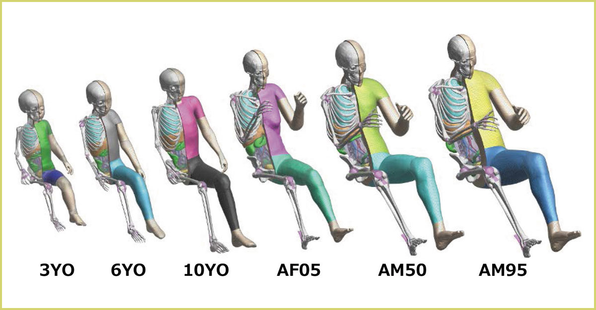מודל THUMS פותח במקור על בסיס בובת ניסיונות בהדמיה דיגיטלית של תאונות דרכים. הבובה מכילה את כל העצמות, האברים, הרקמות והגידים המצויים בגוף האדם, והיא יכולה לשמש בהדמיות של גבר, אישה או ילד ובמגוון תנוחות כגון ישיבה או הליכה.