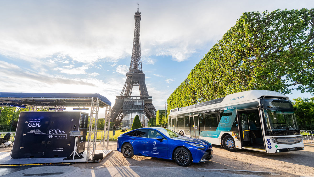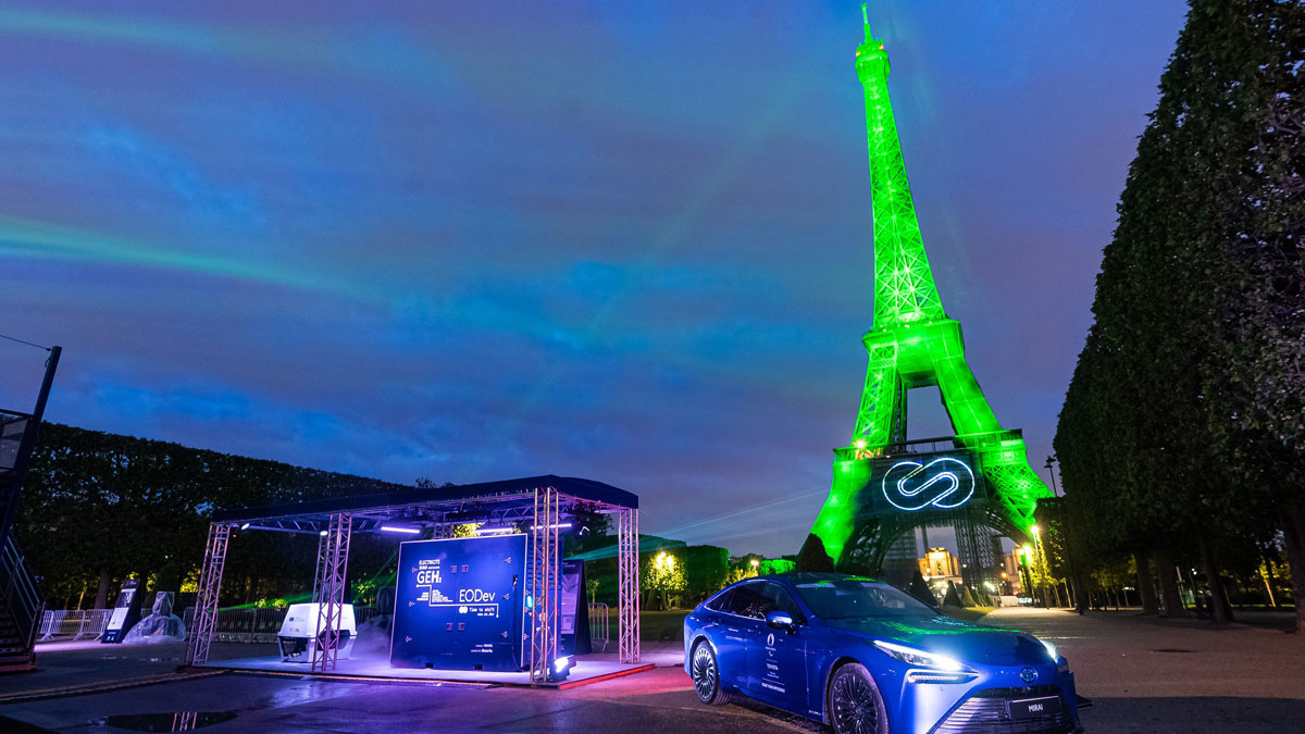 מגדל אייפל בפריז הואר לאחרונה באור ירוק אשר הופק מאנרגיה בת קיימא הודות לטכנולוגיית תאי הדלק של חברת טויוטה. האירוע מסמל את השימוש באנרגיה מתחדשת נטולת פליטות פחמן. האור הירוק שהופץ ממגדל אייפל הופק באמצעות גנרטור בשם 2GEH, אשר טויוטה פיתחה עם חברת EODev (Energy Observer Developments), סטארט-אפ אירופי לתכנון, הרכבה והפצה של מערכות ללא פליטת מזהמים בקנה מידה תעשייתי, שטויוטה שותפה ומשקיעה בו. הגנרטור שימש להנעת מערכת תאי הדלק של טויוטה באמצעות מימן, שפותחה כפתרון מודולרי ליישומים מגוונים כגון משאיות, אוטובוסים, שימושים ימיים ויישומים נייחים.