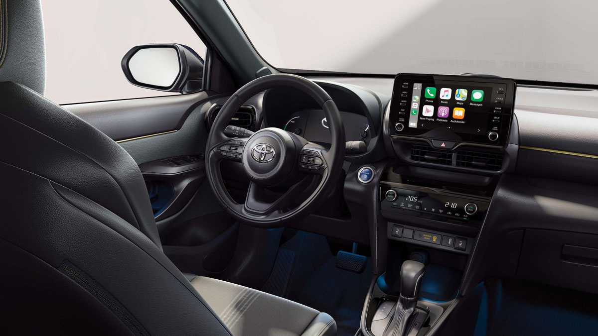 בגרסת ההשקה של היאריס קרוס מערכת מולטימדיה מקורית עם מסך מגע שמונה אינץ', דיבורית Bluetooth וממשק Apple CarPlay ו-Android Auto. זאת נוסף על תאורת LED מלאה, חימום המושבים הקדמיים, ריפוד משולב דמוי עור וחישוקי 17 אינץ'. בגרסת הבנזין הגבוהה היאריס קרוס מגיע עם גג פנורמי, כניסה והתנעה חכמה, פנסי ערפל LED ותאורת אווירה.