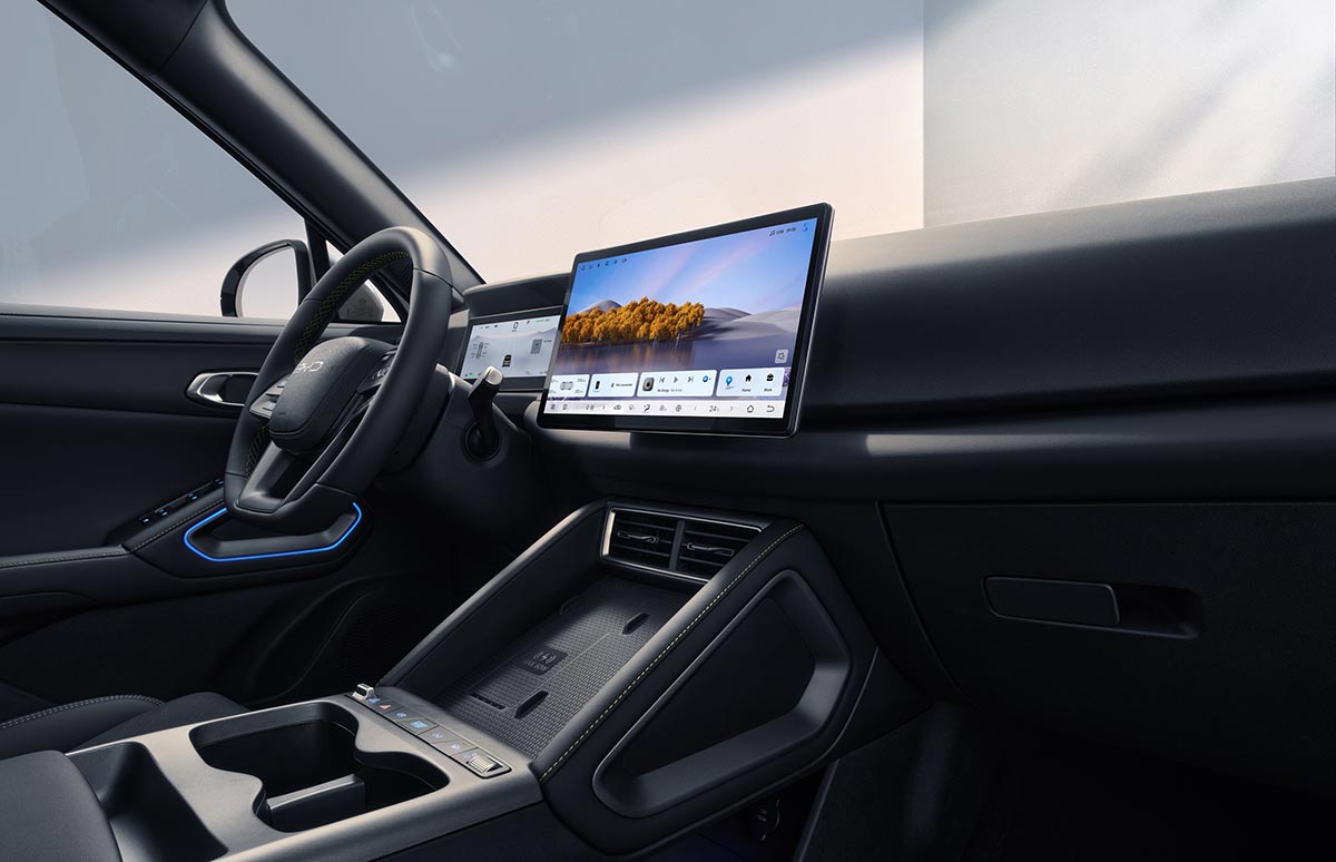 ל־ATTO 2 Comfort לוח מחוונים דיגיטלי בגודל 8.8 אינץ' ומסך מגע מולטימדיה בגודל 12.8 אינץ'. מערכת התוכנה שלו תומכת באפליקציות כגון Spotify, YouTube ו־Zoom, ומתאפשרת גם קבלת עדכונים מרחוק OTA (Over The Air). המשתמשים יכולים להטעין מכשירים דיגיטליים באמצעות שתי יציאות USB Type-C מלפנים, שתי יציאות מאחור ומשטח טעינה אלחוטי בקונסולה המרכזית. בדגם זה קיימים גם פתחי מיזוג למושבים האחרים.