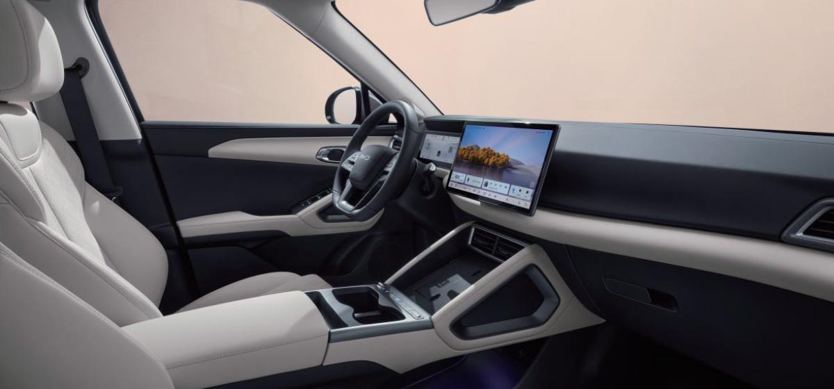 תא הנוסעים בעיצוב קלסי עם מרחב נדיב, תוך שימוש בחומרי פרמיום ובמערכות טכנולוגיה מתקדמות. העיצוב הקדמי ממשיך את קו העיצוב החיצוני, עם דשבורד המבוסס על קווים פשוטים ונקיים ומשטחים מרופדים בכל האזורים המרכזיים. בקונסולה המרכזית זוג מחזיקי כוסות ומשענת יד משולבת עם מספר אזורי אחסון. "מוקד שליטה" עם כפתורי שליטה פיזיים מיועד לתפקודי רכב כגון מפשיר אדים, שליטת ווליום ובורר מצבי נהיגה. המצביםNormal, Sport ו־Snow משנים בהתאמה את אופן הנהיגה לפי תנאי הכביש ואופי הנהיגה הנדרש. האווירה בתא הנוסעים משודרג בזכות גג זכוכית פנורמי ורצפת רכב שטוחה הודות ל־e-Platform 3.0, לפיכך תא הנוסעים האחורי נשאר פרקטי לשימוש משפחתי, עם מרווח נדיב לרגליים ולראש.