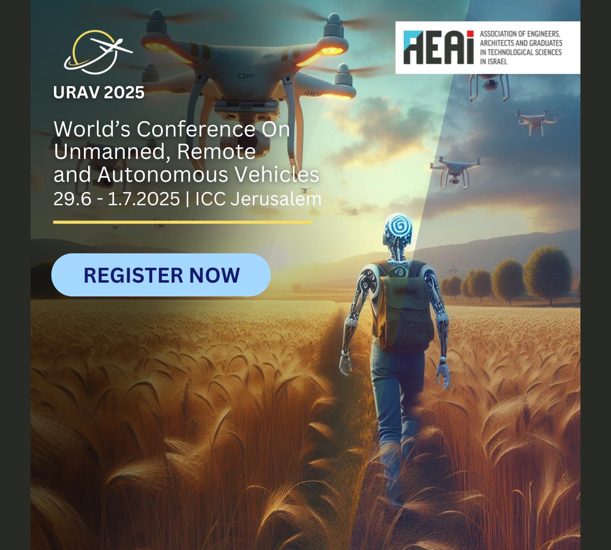 URAV 2025 מתקיים השנה בשיתוף לשכת המהנדסים. יהיו בו פנלים מקצועיים, הרצאות מומחים והצגת מחקרים עדכניים לצד הזדמנויות נטוורקינג מגוונות. בין הנושאים שיידונו: יישומי בינה מלאכותית גנרטיבית בכלים אוטונומיים, פתרונות לתחבורה, חקלאות, לוגיסטיקה, גילוי שריפות, אכיפה, פלטפורמות תת-ימיות חכמות וחקר מעמקים.
