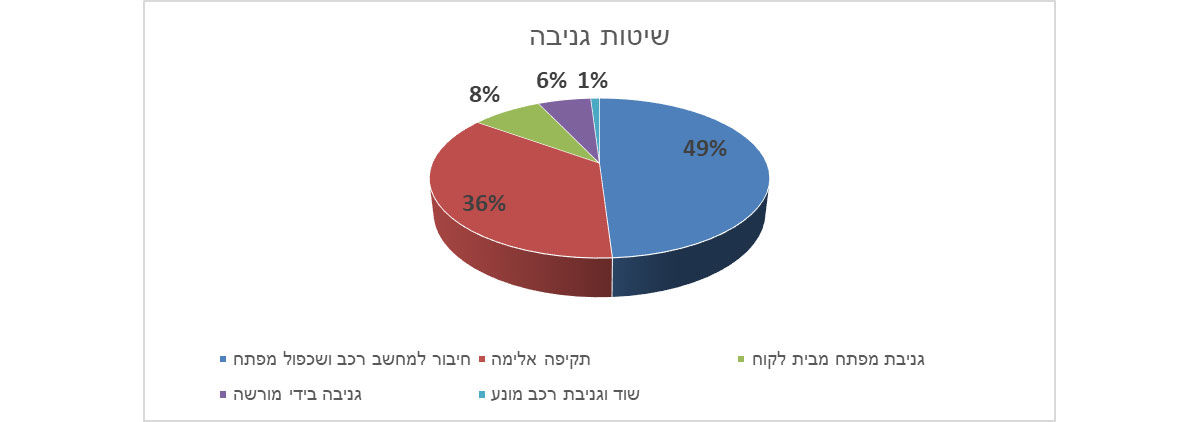 שוד וגניבת רכב מונע - 1% מסך הגניבות השנה, ירידה של 50%.