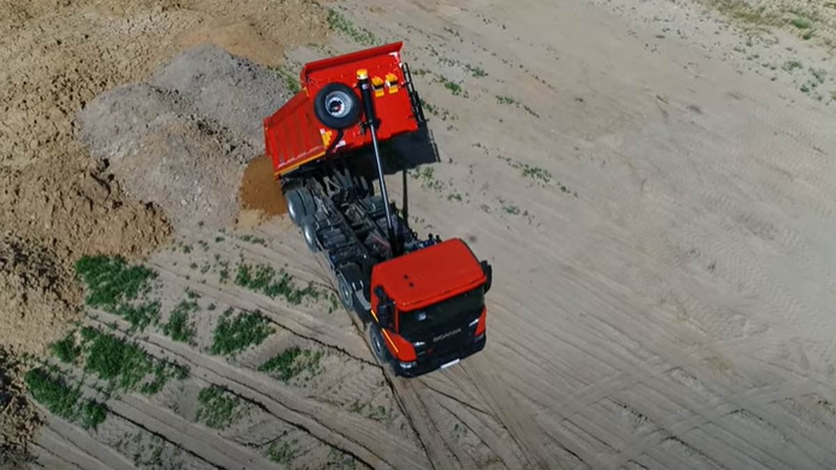 שלב העבודה האחרון הוא פריקת המטען. בשלב זה נדרשת זהירות יתרה, ובו בזמן העבודה צריכה להיות אפקטיבית. הרכינה מיועדת הן לנסיעה בכביש והן לעבודות שטח, להעמסה של חומרי מחצבה, עפר, חצץ ואספלט, ופריקתם בשטח. המשאית צריכה לגלות יעילות כלכלית, כלומר לבצע שינוע מהיר של החומר, לנסוע מהר בכבישים סלולים (וגם שאינם סלולים), לתמרן בזריזות בדרכי עפר ולאפשר פריקה של החומר במהירות. עליה לייעל ולמקסם את מחזורי העבודה ביום עבודה.