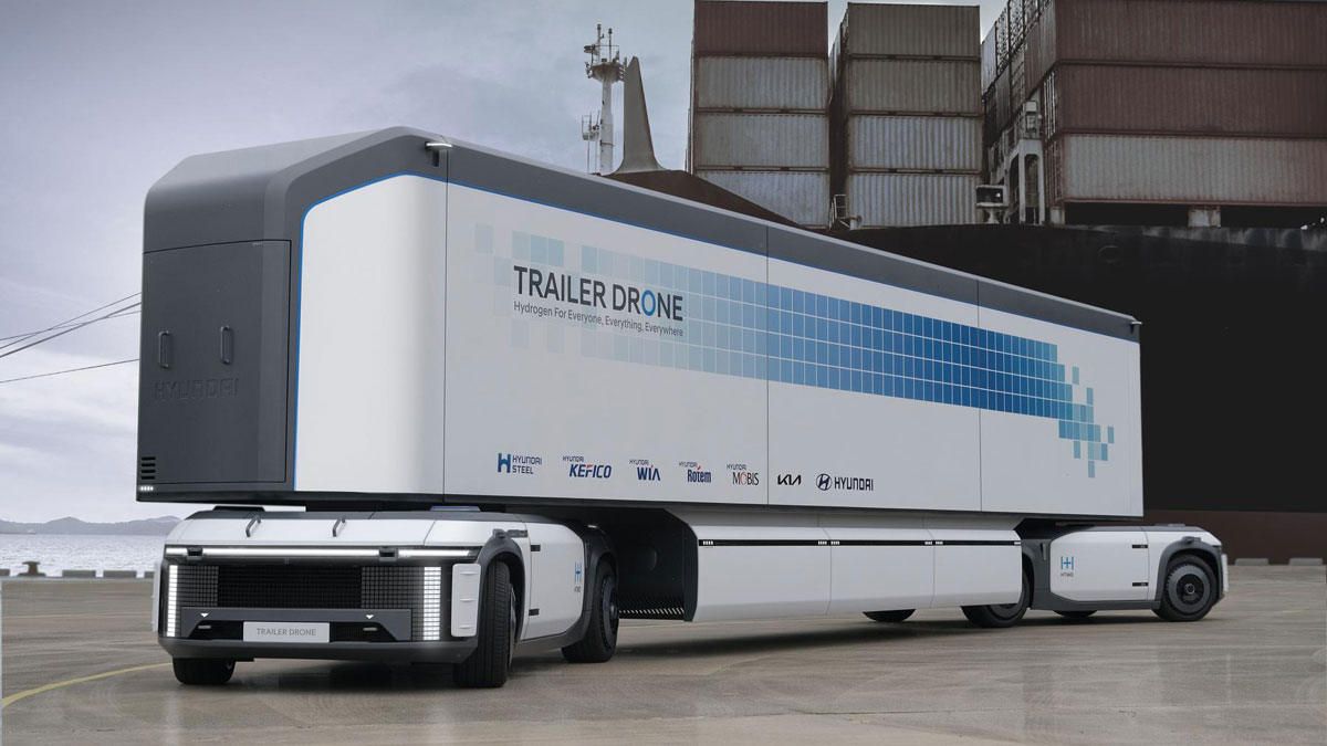 יונדאי הדגישה את הרעיון שלה, Trailer Drone, נתמך המשמש במערכת הובלת מכולות המונעת על ידי מימן והמסוגלת לפעול באופן אוטונומי לחלוטין. על הנתמך מותקנים מספר מכלי מימן ארוזים בחוכמה באופן מותאם לפרופיל הנסיעה. מנוע תאי הדלק הגמיש והיעיל מבטיח טווח נסיעה של יותר מ-1,000 ק"מ בטעינת מימן אחת. נתון מדהים לכל הדעות.