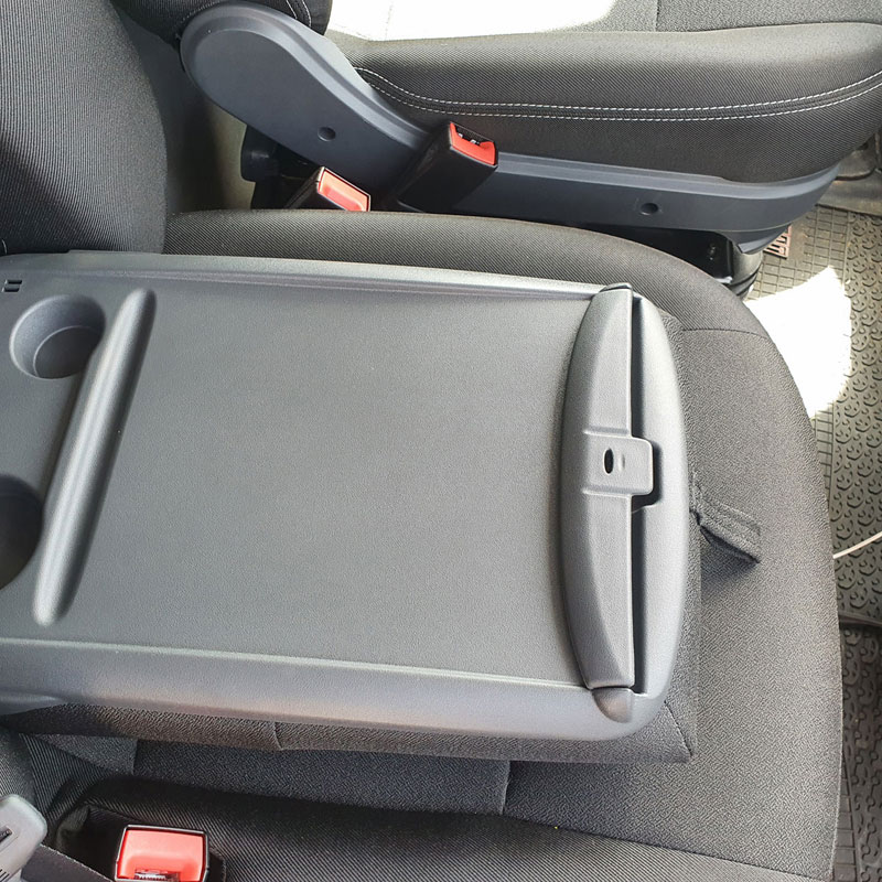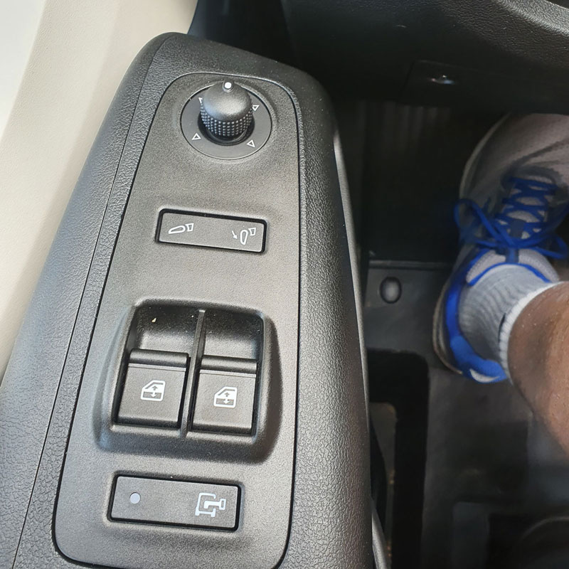 מצידו הימני של המושב משענת יד מתקפלת, ומצידו השמאלי הנהג יכול להשעין את ידו בנוחות על חיפוי הדלת הרחב. גלגל ההגה ניתן לכוונון פנימה והחוצה, לא למעלה ולמטה, אבל מאפשר למצוא תנוחת נהיגה טובה, ושדה הראייה מעולה. למראות הצד חלק גדול רגיל וחלק קטן יותר מתחתיו, בעל מראה פנורמית. שני החלקים ניתנים לכוונון חשמלי באמצעות כפתור על דלת הנהג.