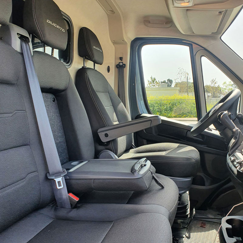גם האבזור בדוקאטו הוא ברמה של מכונית פרטית. למעט מראה בסך השמש, יש בו כל מה שהנהג יכול לצפות לו: חלונות חשמליים, נעילה מרכזית, מראות צד חשמליות שמתקפלות אוטומטית עם נעילת הרכב, שני תאי כפפות, כשהעליון, שנמצא בחלקו העליון של לוח המכשירים, מקורר, חיישנים להפעלה אוטומטית של התאורה הקדמית ומגבי השמשות, מושב נהג הידראולי עם שפע של אפשרויות כוונון וכמובן מערכת שמע עם צג מגע שבעה אינץ', הכוללת Apple CarPlay, Android Auto ודיבורית Bluetooth.