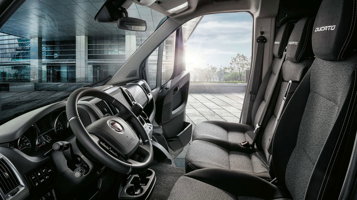 הכניסה לפיאט דוקאטו מחייבת טיפוס מדרגה, ונהגים קצרי קומה לא יצליחו להגיע לידית האחיזה היחידה, הנמצאת מעל לחלון. מצד שני, יהיה להם יותר נוח במושב מאשר לנהגים ארוכי קומה, שכן טווח ההזזה לאחור של המושב מוגבל על ידי המחיצה שמפרידה בין תא הנהג לתא המטען. לפיכך נהג שאוהב לנהוג כמו במכונית פרטית, קרי עם רגליים פשוטות לפנים וגב מושב מוטה לאחור, לא ימצא כאן את מבוקשו. מצד שני, המושב עצמו הידראולי, השיכוך ניתן להתאמה למשקל הנהג, וכרית המושב מעניקה כעת תמיכה צידית משופרת.