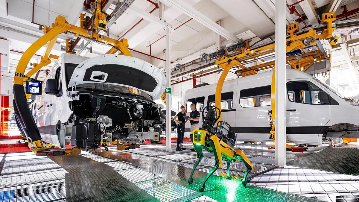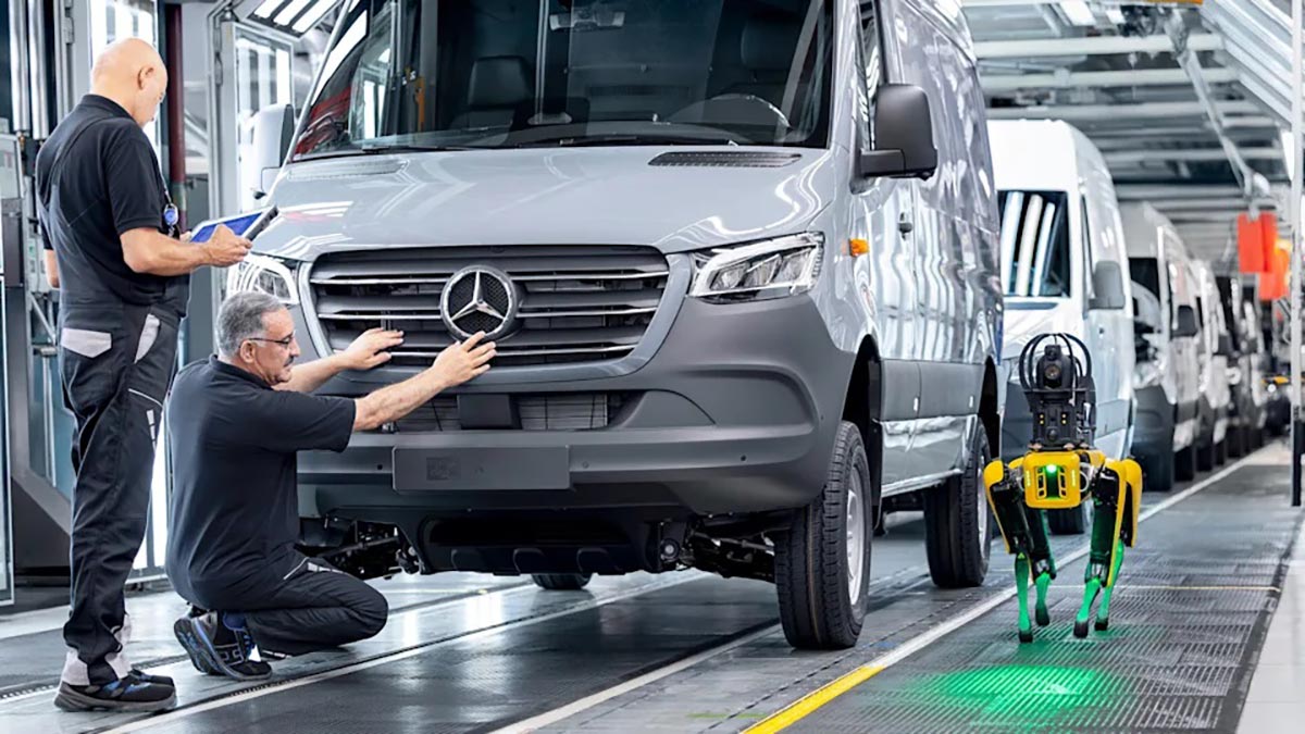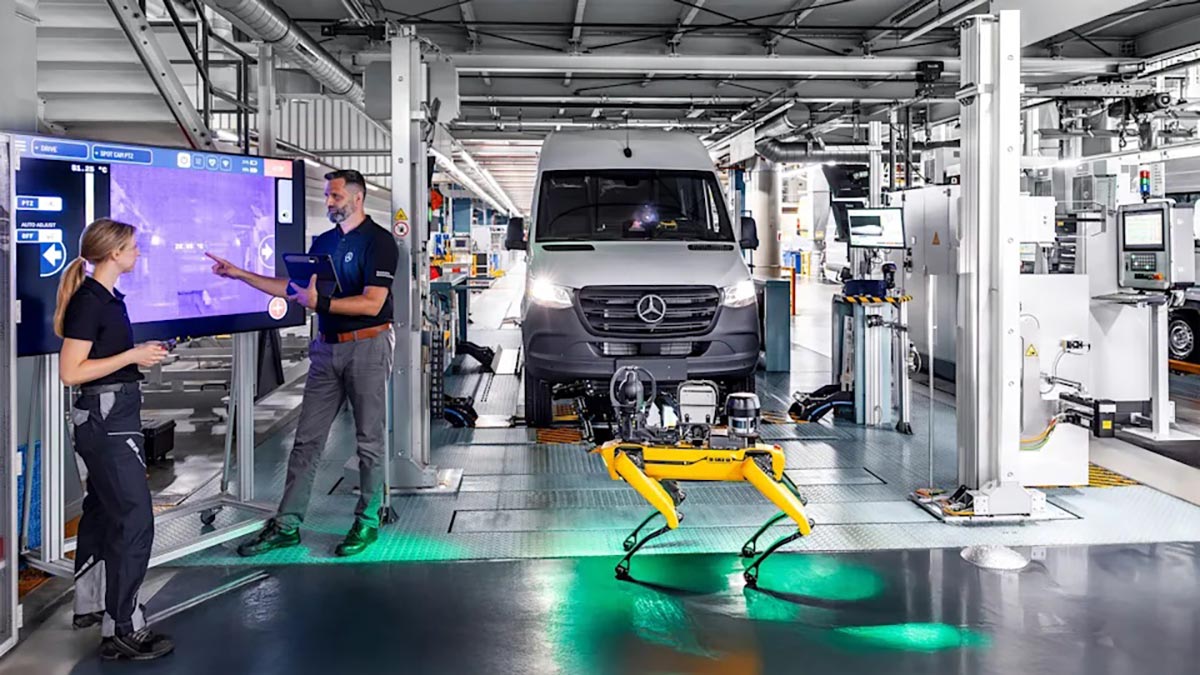 מרצדס־בנץ (Mercedes-Benz) מאיצה את תהליך הדיגיטציה במפעל רכבי הוואן שלה בעיר דיסלדורף שבגרמניה באמצעות שילוב מערכות רובוטיות אוטונומיות שנועדו להפחית עלויות, לשפר את היעילות ולמנוע תקלות ייצור. בלב המהלך עומד רובוט בצורת כלב בעל ארבע רגליים בשם אריס (Aris), המצויד בחיישנים מתקדמים ובבינה מלאכותית שמזהים דליפות אוויר דחוס ותקלות לפני שהן גורמות להשבתה.