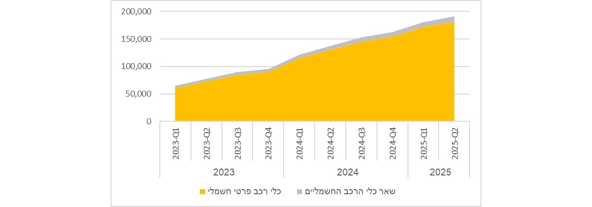 תרשים 6: כלי רכב פרטיים חשמליים ושאר כלי הרכב החשמליים, 2023 עד 2025 (רבעון שני)