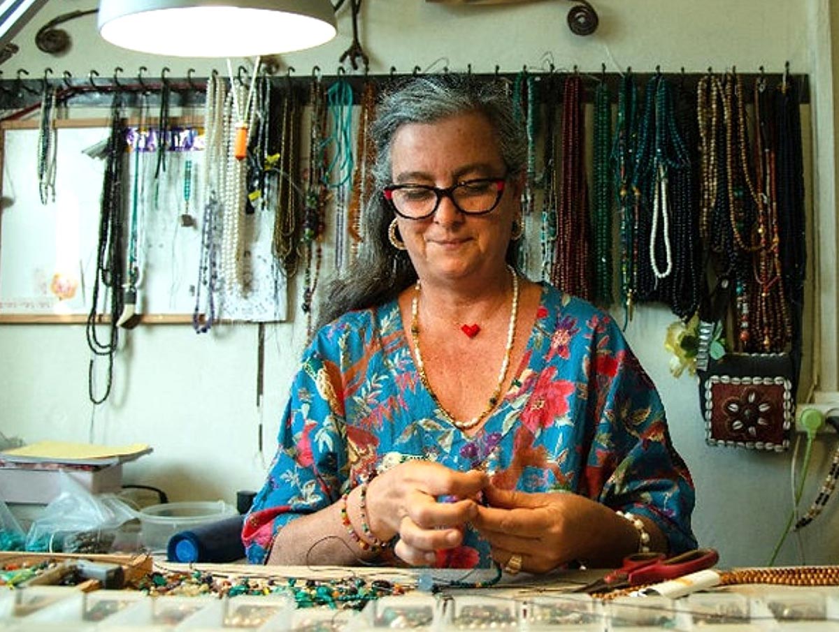 סדנאות הכנת תכשיטים עם לולה קדם. מכפר האמנים. צוקים הערבה התיכונה. צילום: אדוארד קפרוב