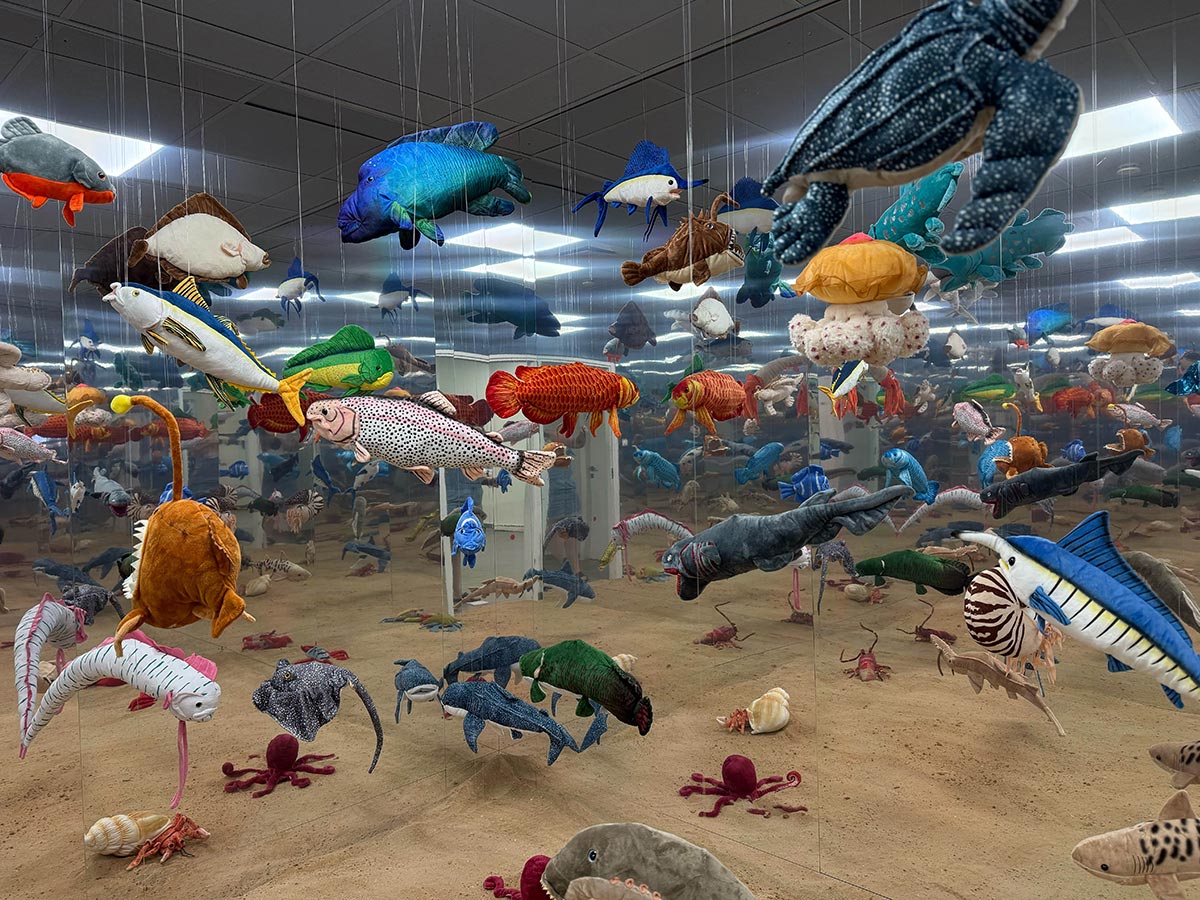 מאיה ומקס גת־מור מסטודיו plan b ייצרו מיצב תלוי ממאות סכיני מטבח מרחפות, שמשרטט את המתח בין סכנה לשלווה ובין כאוס לסדר - רגע של יופי שנולד מתוך שבר ופחד.