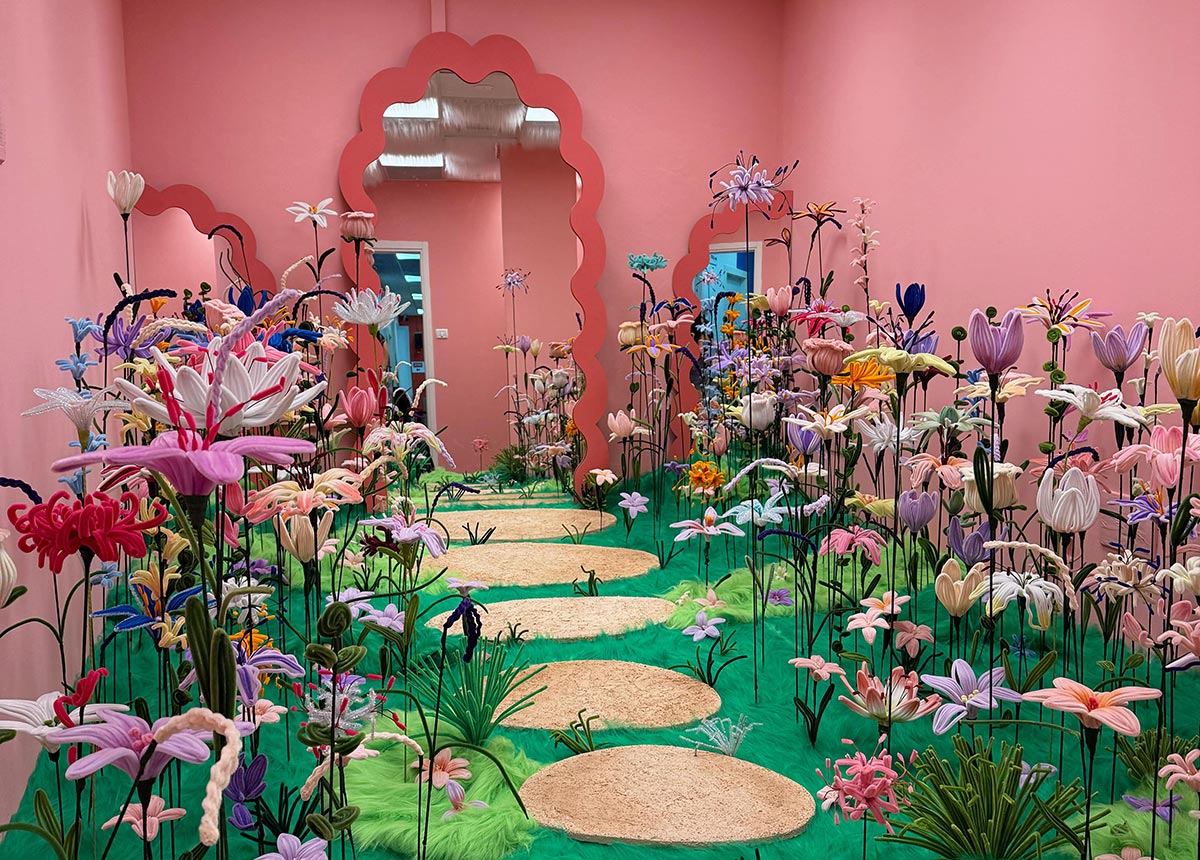 רותם מיכאלי תבנה שדה פרחים ענק עשוי מנקי מקטרות - סביבה רכה לקוחה מפסיעה בין עדינות לכוח פנימי, ובין פגיעות לצמיחה - מעשה ריפוי אישי שהופך לשדה של תקווה.