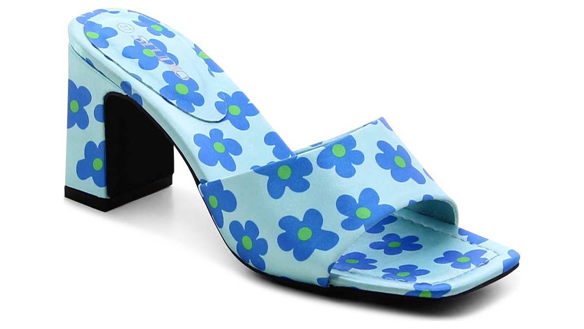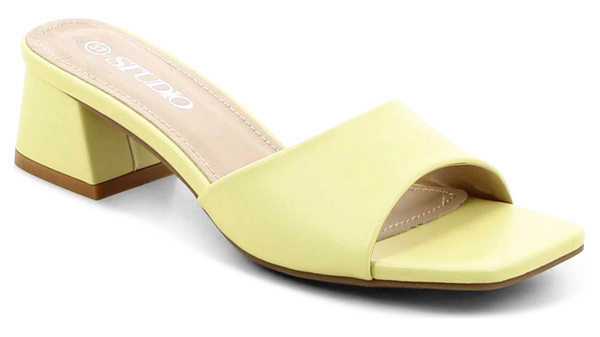 כפכפי עקב מיד: דגם קלאסי של עקב בלוק ועקבים מתרחבים בגובה בינוני, מוצעים בצבעים פסטלים של תכלת, צהוב, ניוד, פרחוני ועוד.