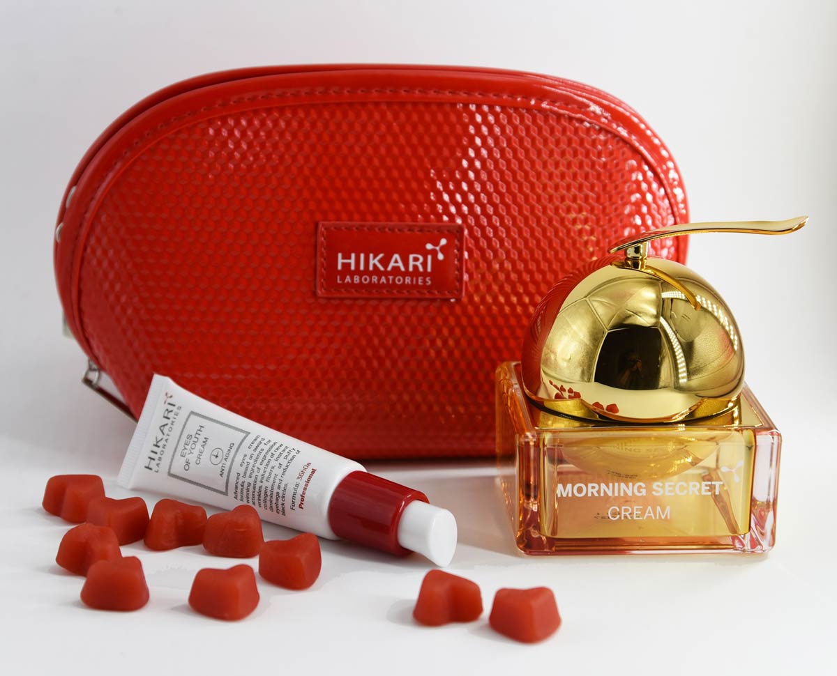 מותג הקוסמטיקה המקצועית הישראלי-בינלאומי מעבדות היקארי מציע כמתנה אוהבת לוולנטיין מארז חגיגי ומהודר הכולל שני מוצרים חדשניים מבית המותג, קרם פנים MORNING SECRET להגברת האנרגטיות של העור וקרם עיניים מהפכני ואפקטיבי למזעור קמטוטים, נפיחויות וכהויות. המוצרים ארוזים יחדיו בתיק איפור אדום ואיכותי כאריזת מתנה!