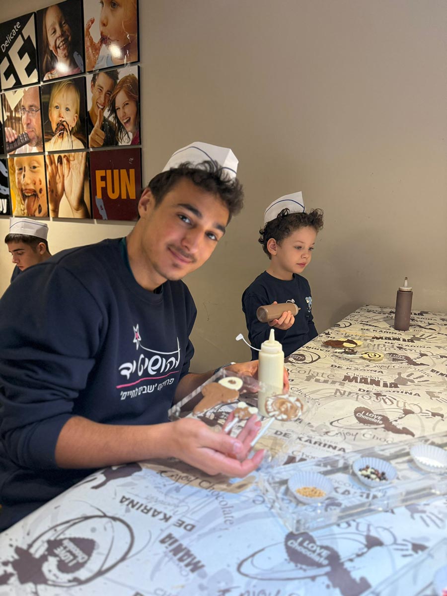 ילדות וילדים יתומים מעמותת 'להושיט יד', אשר חלקם התייתמו בעקבות מלחמת חרבות ברזל, התארחו לסדנאות שוקולד בסטודיו לשוקולד 'דה קרינה' בעין זיוון בצפון הגולן.