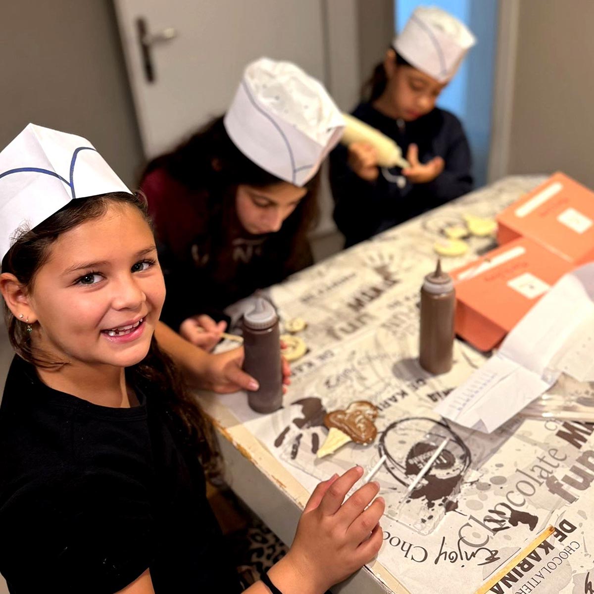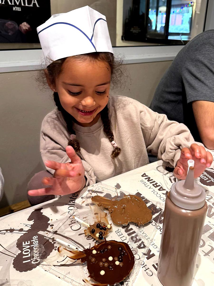 הילדים למדו על ייצור שוקולד והתנסו בהכנת פרליני שוקולד טעימים ומתוקים אותם אכלו בשמחה.