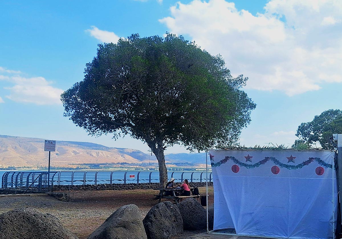סוכות בחוף צינברי. צילום: אושרי בן דור, איגוד ערים כינרת