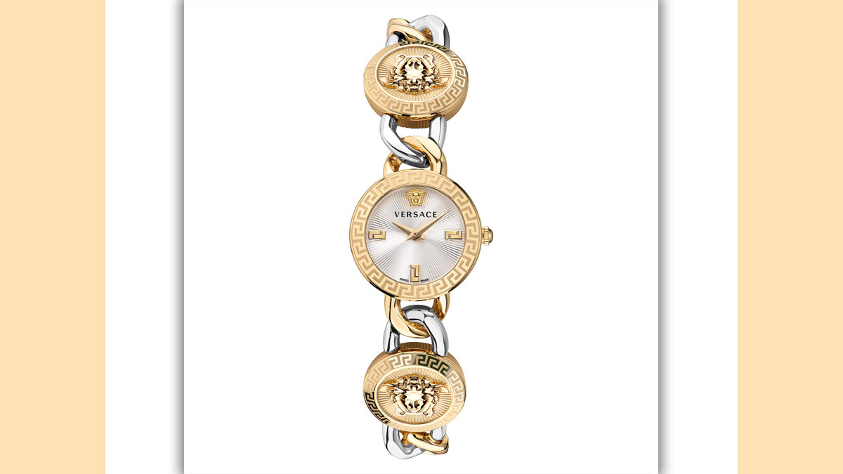 על לוח השעון-תכשיט, בשעה 12:00, מתנוסס סמל המדוזה המוכר של המותג, והוא גם מפוסל בתלת-ממד על רצועת המתכת משני צדדי השעון. צמיד השעון עשוי מחוליות מתכת שמעניקות מראה אופנתי של צמיד.
