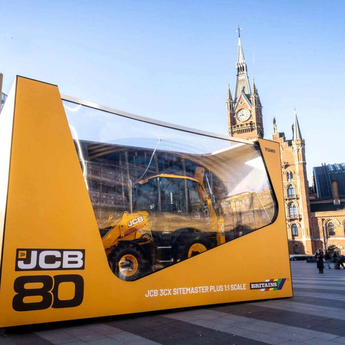 המיצב המרהיב, שזכה לכינוי JCB Backhoe in a Box (מחפרון JCB בקופסה), הוא של כלי צמ"ה אמיתי, עובד ובגודל מלא, כאילו היה דגם אספנים מוקטן בקנה מידה של 1:32. אריזת התצוגה השקופה והממותגת מעוצבת בדיוק כמו צעצועי הילדים המוכרים שנמצאים על מדפי החנויות, רק בממדי ענק. המיצב, שנחשף לראשונה במטה העולמי של חברת JCB בעיירה רוסטר שבמחוז סטפורדשייר, נחת בבירה הבריטית כחלק ממסע תצוגות רחב היקף ברחבי הממלכה המאוחדת.