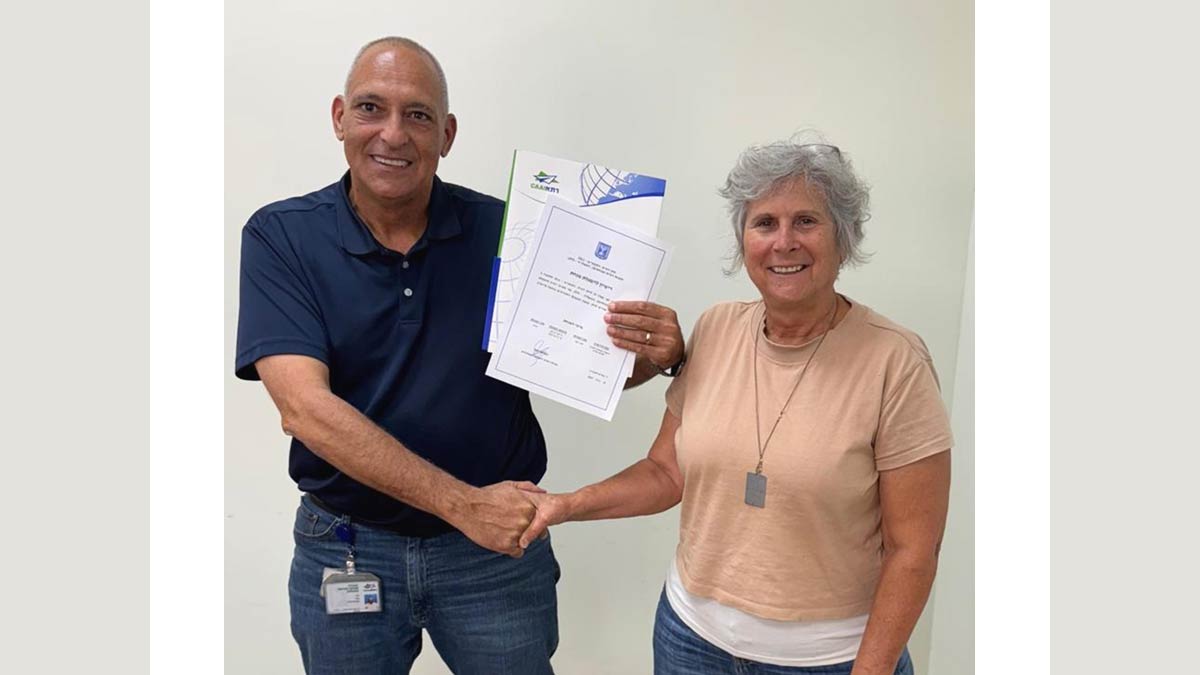 נתי קציר מרת"א מעניק רישיון הפעלה אזרחית למנחת עין יהב, לנעמי בקר מנהלת החברה לפיתוח הערבה. צילום: מועצה אזורית הערבה התיכונה