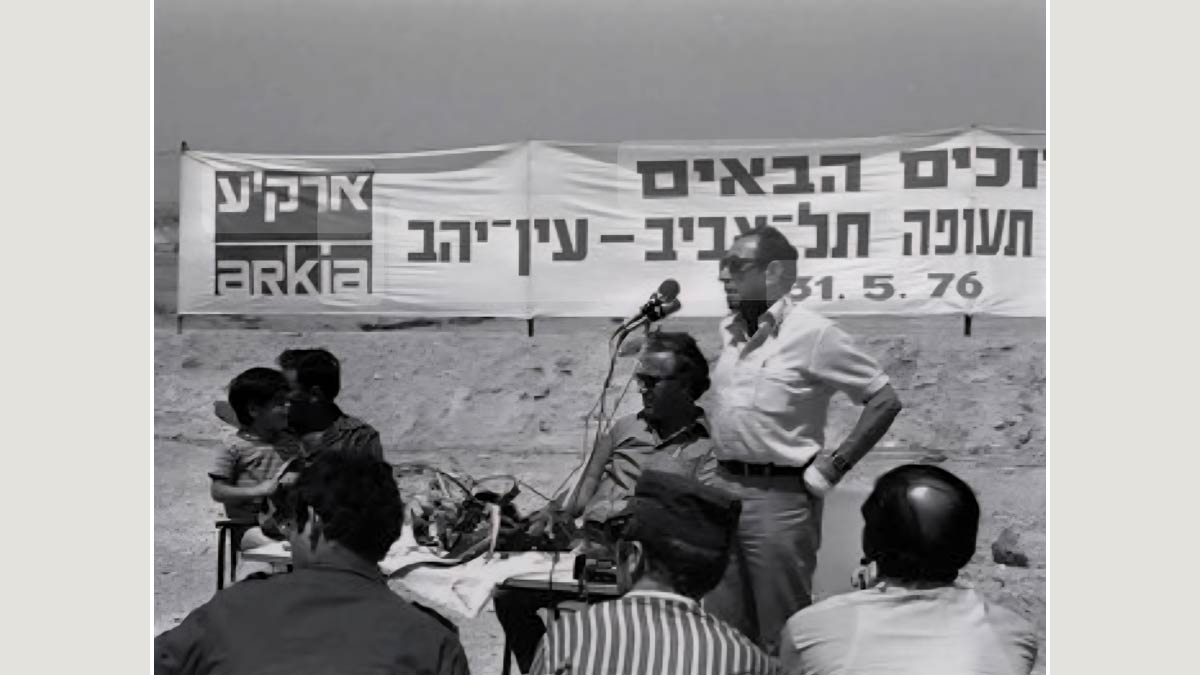 31.5.1976 - הערבה התיכונה- שר התחבורה דאז גד יעקבי חונך עם חב' ארקיע את קו התעופה ת"א-עין יהב. צילום: ארכיון עין יהב
