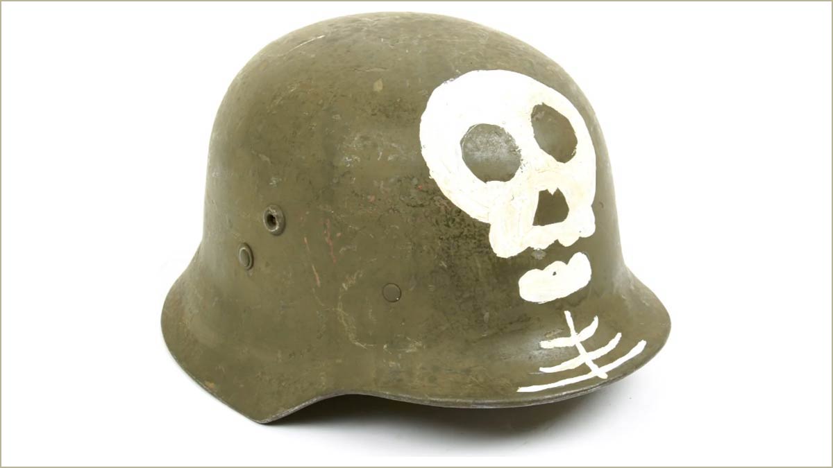 מלאי של קסדות וציוד צבאי מימי המלחמה נרכש על ידי האתר, המוכר ישירות מהממשלה הפינית, עם הוכחות רשמיות שמדובר בציוד צבאי אותנטי מהתקופה. הקסדה הייתה בשימוש של גדוד 46 של חיל הרגלים של צבא פינלנד. על השתייכותה ליחידה מלמד סמל הגולגולת המקורי של גדוד 46 שנצבע מחדש ושוחזר.