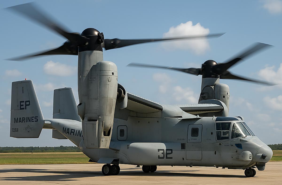 בכנס Modern Day Marine שהתקיים בוושינגטון בתחילת מאי, הודיע מנהל התוכנית לפיתוח מטוסי אוספרי (V-22 Osprey) בחיל הנחתים האמריקני, אל"מ רוברט הרסט (Robert Hurst), כי המסוק לא יחזור לפעולה מבצעית מלאה לפני שנת 2026. הסיבה היא שדרוג מהותי של תיבת ההילוכים, כולל החלפת רכיבים פנימיים, בגרסה מחוזקת המיוצרת בתהליך התכה משולשת של פלדה.