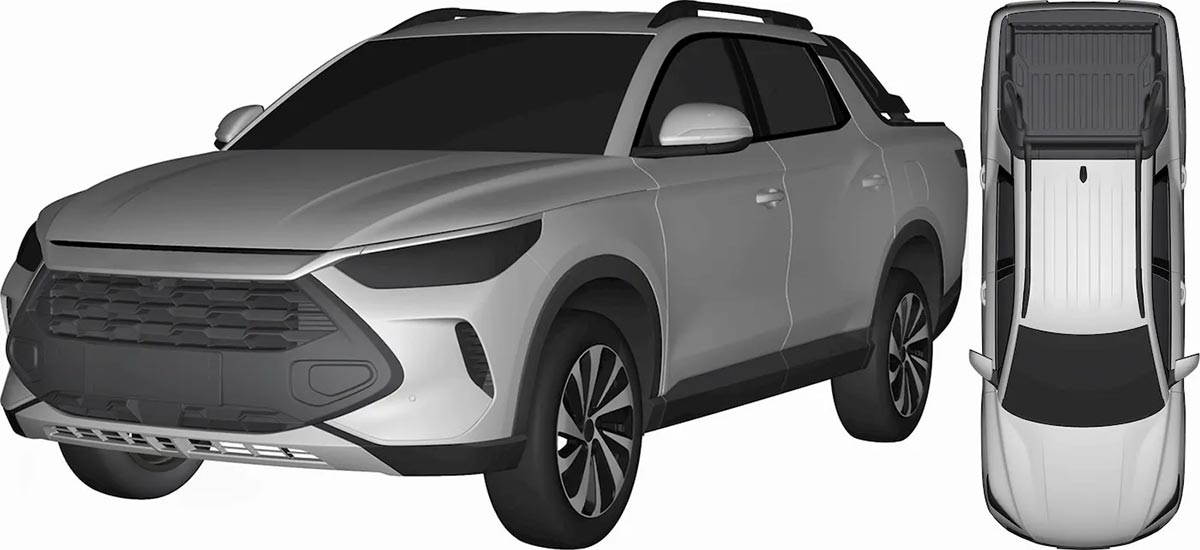 הדגם נצפה לאחרונה בסין כשהוא מוסווה, אך גם דרך ההסוואה היה אפשר להבחין בממדים הקטנים. רישומי הפטנט חושפים מבנה אחיד, האופייני יותר לקרוסאוברים ולטנדרים קומפקטיים, בניגוד לשלדת סולם מסורתית.