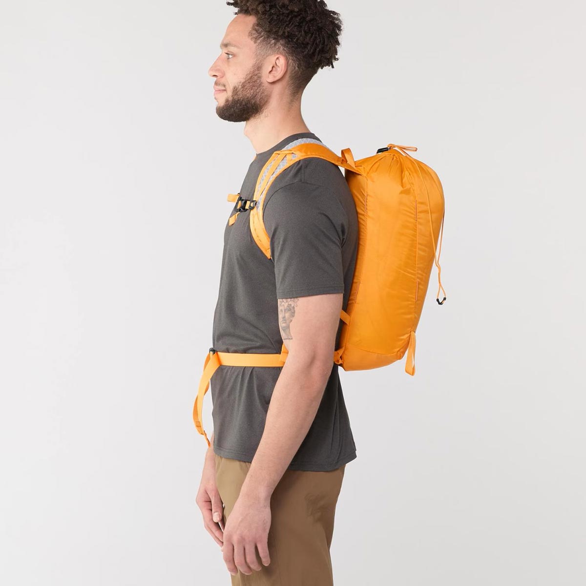 מבחינת מבנה וחומרים, לתרמיל אין שלד מרכזי. הוא עשוי מניילון עמיד ממוחזר בצפיפות 70 דניר עם ציפוי דוחה מים (DWR), נטול חומרים פלסטיים מזהמים. רצועות הכתפיים מרופדות ברשת נושמת המסייעת בפיזור חום ולחות. משקלו הוא 270 גרם בתצורה מלאה, ואפשר להפחיתו ל־200 גרם באמצעות הסרת חגורת המותן והרצועות הנוספות.