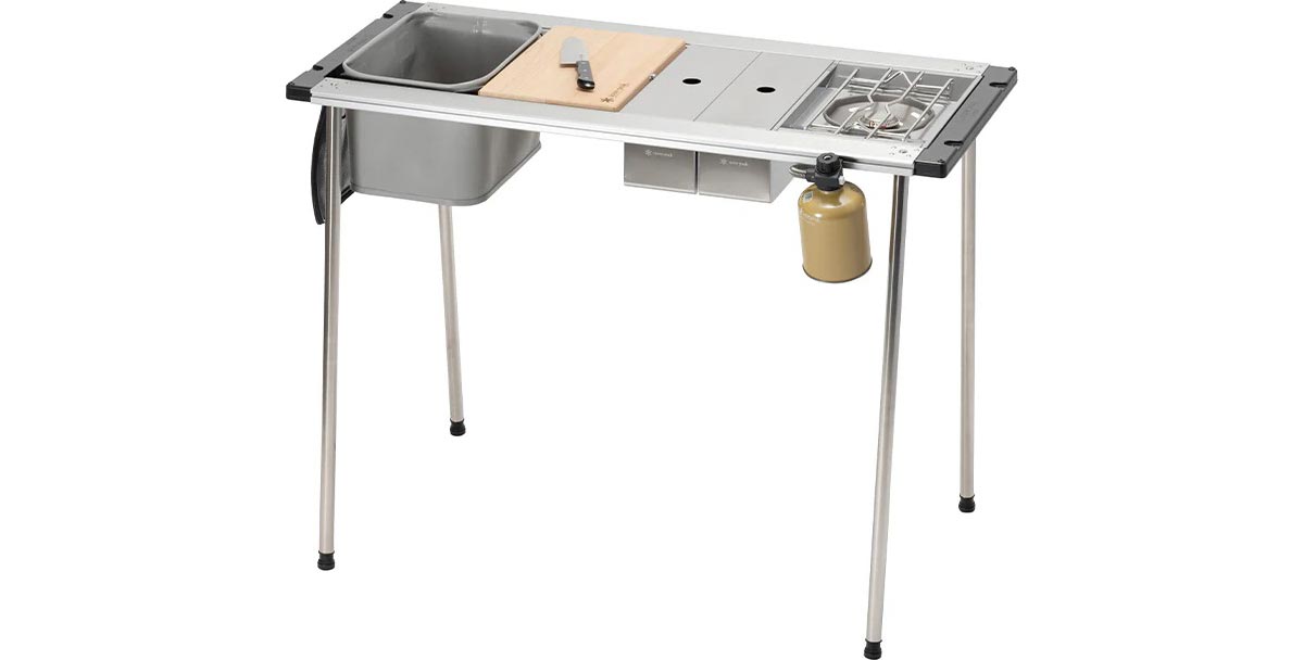 כאן נכנס לתמונה הסט למטבח שדה של סנופיק (SnowPeak IGT). הסט הוא למעשה שולחן קמפינג פרמיום עם מבנה מודולרי, קל משקל ומוקפד. המוצר של יצרן יפני, עסק משפחתי הפועל זה עשרות שנים ומעניק אחריות ארוכת טווח תוך שימת דגש בעמידות ובשימוש ממושך.