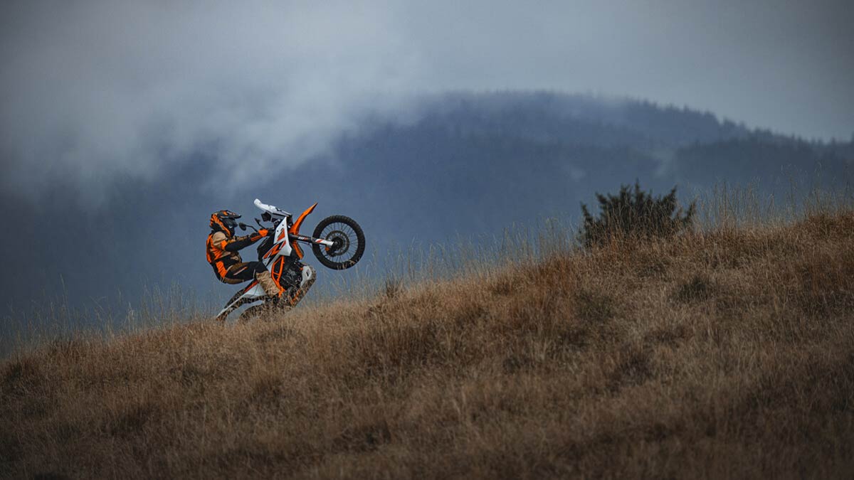 אל השלדה מחוברים מתלי WP APEX, אשר בגרסת R כוללים מזלג קרטריג' פתוח בקוטר 43 מ"מ ובמהלך 230 מ"מ מלפנים, עם יכולת כוונון ב־30 מצבים לריבאונד וקומפרשן. מאחור ישנם זרוע אחורית חדשה ובולם WP APEX מתכוונן ב־20 מצבי ריבאונד וגם Preload במהלך של 230 מ"מ. מתלים אלה כוילו להציע יכולות שטח גבוהות גם לתנאי עבירות קשים, אך גם נוחות מרבית ברכיבת כביש ממושכת. החישוקים והצמיגים שנבחרו לגרסה זו הולמים את הייעוד לרכיבת שטח אמיתית, עם חישוק 21 אינץ' מלפנים ו־18 אינץ' מאחור הנועלים צמיגי Mitas Enduro Trail E07+.