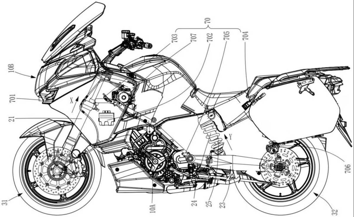 מערכת המתלה הפעילה שמותקנת היום באופנועים מסתמכת על חיישנים שמנטרים את מרחק הרכיבה והמהירות של האופנוע. החיישנים מקבלים מידע מהכביש ושולחים אותו למחשב, שמתאים את הגדרות הדמפר. הדמפר מתאים את המתלה לתנאים ברגע אמת. הפטנט החדש מציג את הפיתוח על האופנוע המוביל של CFMoto, דגם 1250 TR-G. האופנוע מיוצר רק בסין כדגם מקומי, ומוכר כדגם משטרתי עיקרי.