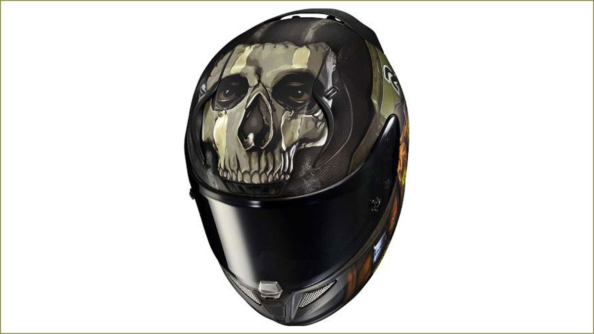 החלק הבולט בעיצוב הקסדה הוא מסכת הגולגולת של אחד מגיבורי המשחק, סמל סיימון ריילי (Lieutenant Simon Riley), שמופיעה בחלק העליון ובצדדים של הקסדה. יש עליה כמובן סמלים נוספים הקשורים למשחק. הכול מעוצב על פני שכבה שחורה של סיבי פחמן.