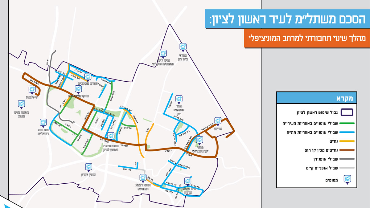 מדובר בהסכם תחבורתי חסר תקדים, הכולל צירי העדפה בהיקף כולל של 35 קילומטרים, מתוכם 30 קילומטרים של נת"צים טקטיים הניתנים לביצוע מיידי, בתוך כשנה. במסגרת ההסכם, ראשון לציון תרושת בנתיבי העדפה לתחבורה ציבורית ותחבורה בת קיימא, שתאפשר להרחיב את שירות התחבורה הציבורית ולספק אלטרנטיבה אמיתית לרכב הפרטי, כבר בשנה הקרובה. לאורך נתיבי התחבורה הציבורית יוצבו מצלמות אכיפה והעדפה אלקטרוניות, לשמירה על דרך פנויה ותנועה חופשית לאוטובוסים.