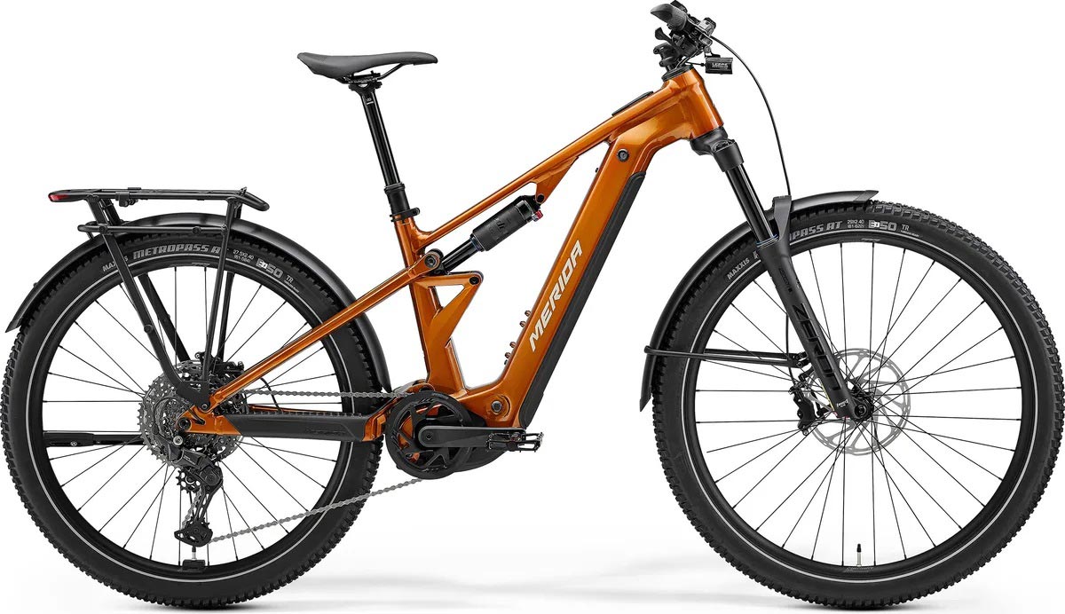 הדגם עוצב והונדס בהשראת הדגם eONE-EIGHTY המוערך של החברה. לאופניים יחידת הנעה ממשפחת בוש פרפומנס ליין (Bosch Performance Line), המביאה את העוצמה המלאה לפלטפורמה זו. מרידה התאימה את סוג המנוע לייעוד הדגם: לדגמי הפרו (400 ו־500) ולדגמים 700 ו־800 מנוע CX מהסדרה, המוכר והחזק, המותאם לרכיבת שבילים אגרסיבית ודינמית. לעומתם, הדגמים 400 ו־500 הבסיסיים משתמשים במנוע PX עם אופי פעולה ורסטילי יותר.