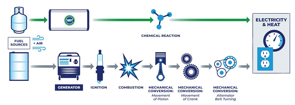 מבחינה טכנולוגית, מדובר בתא דלק מסוג SOFC (תא דלק תחמוצת מוצקה). בניגוד לגנרטורים קונוונציונליים, המערכת אינה שורפת את הגז אלא מייצרת חשמל באמצעות תגובה כימית בין הגז הטבעי לחמצן מהאוויר. התהליך דומה עקרונית לפעולת תא דלק מימני, אך משתמשת בדלק זמין וזול בהרבה, תוך פליטת מזהמים נמוכה בהרבה בהשוואה למנוע בעירה פנימית רגיל.