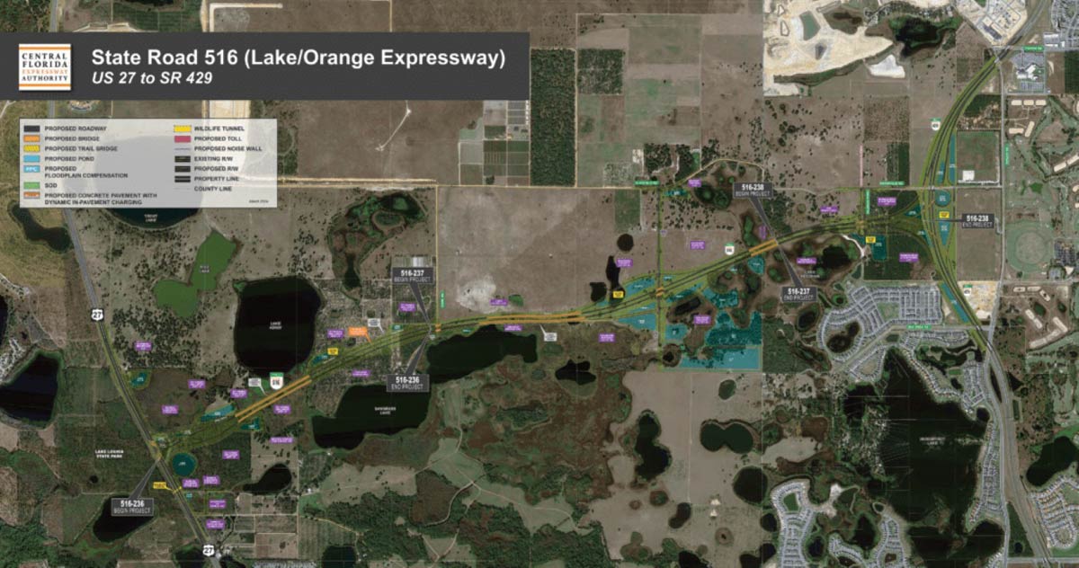 רשות הכבישים המהירים של מרכז פלורידה הודיעה, כי תשלב קטע כביש מחושמל לטעינה אלחוטית של כלי רכב חשמליים במסגרת הקמת כביש 516, פרויקט תשתית חדש שיחבר בין מחוזות לייק לאורנג' במרכז המדינה. מדובר במהלך ניסיוני שמציב את פלורידה בחזית המאמצים לפיתוח פתרונות טעינה מתקדמים לרכב חשמלי בארצות הברית.