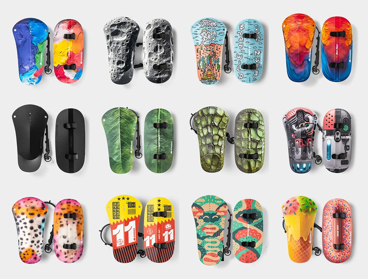 העיצוב נשמר פשוט במכוון וכולל חומרים קלים, הרכבה מהירה וטיפול קל. בד בבד המגנים כוללים עיצובים מושכי עין וידידותיים לילדים, המשלבים את האופניים אל תוך עולם המשחק. הקולקציות מכסות מגוון רחב של נושאים, מחיות וטבע ועד חלל, מרוצי מכוניות וממתקים. המארזים מגיעים עם מדבקות תואמות, שבהן הילדים יכולים להשתמש כדי להתאים אישית את האופניים שלהם.