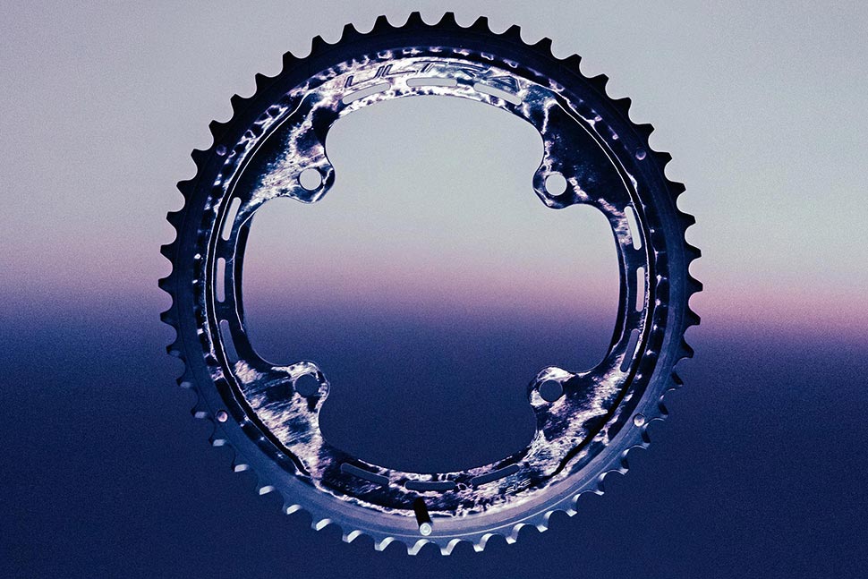 השרשרת הראשית מיוצרת מסיבי פחמן עם שיניים מאלומיניום מוקשח מסוג 7075. תהליך הייצור מתבצע במפעל הבית של החברה בוויצ'נצה (Vicenza) שבאיטליה, בתנאי לחץ ובקרת חום מדויקת של 130 מעלות צלזיוס, כדי לשמר את כיוון הסיבים בתוך השרף. התוצאה, לפי החברה, היא חוזק מרבי עם מינימום משקל. גלגל 50 שיניים שוקל רק 78 גרם - חיסכון של 34 גרם לעומת דגם סופר רקורד הרגיל, וגרסת 52 שיניים שוקלת 102 גרם.