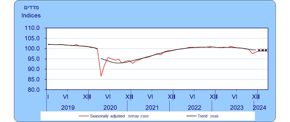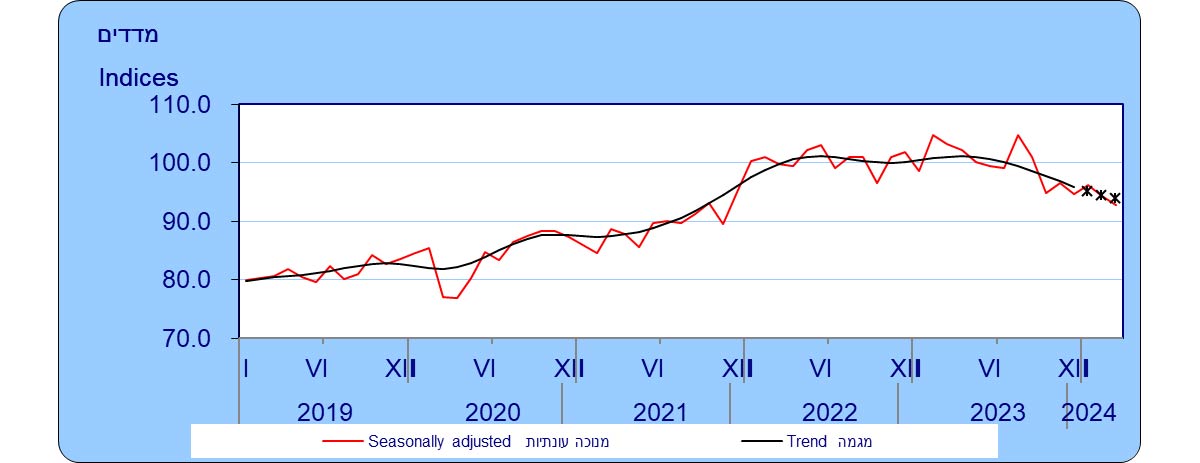 על פי נתוני המגמה, בייצור התעשייתי נרשמה ירידה מחודש מאי 2023. במדד משרות שכיר נרשמה יציבות במגמה מחודש פברואר 2024.