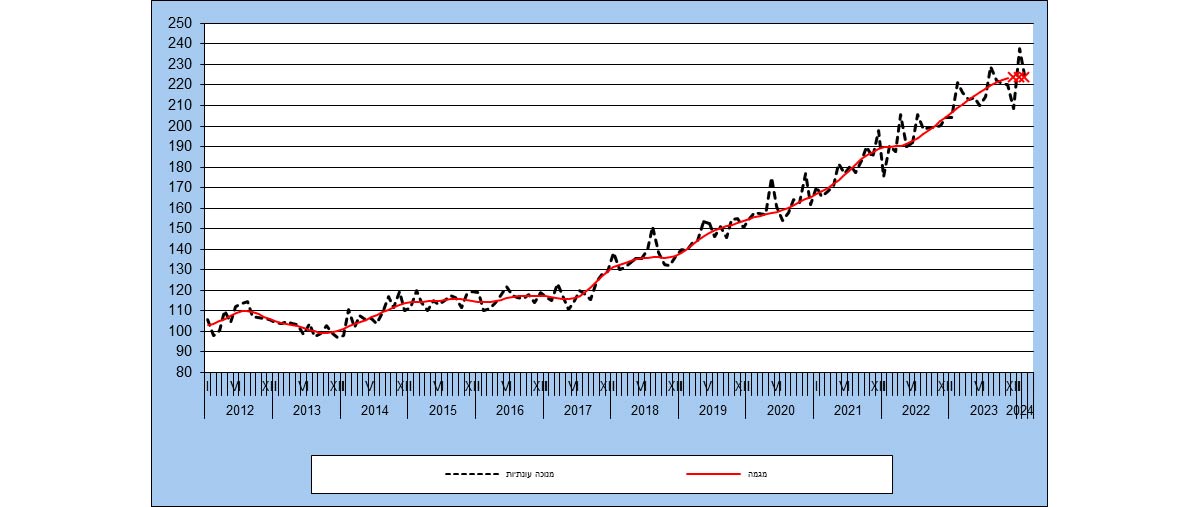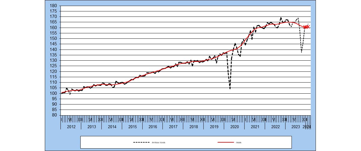 נתוני מגמה נאמדים לאחר הסרת ההשפעה של אי-הסדירות ("רעשים") מהנתונים מנוכי העונתיות.