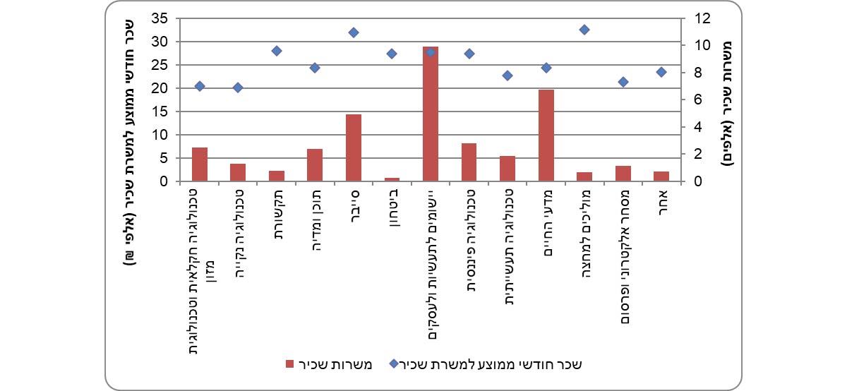 תרשים 5 - שכר חודשי ממוצע למשרת שכיר ולמשרות שכיר לפי תחום פעילות בחברות ההזנק, 2023