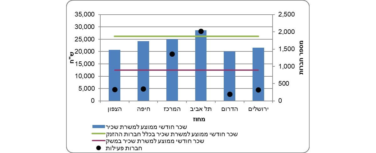 תרשים 4 - חברות פעילות ושכר חודשי ממוצע למשרת שכיר בחברות הזנק לפי מחוז, 2023